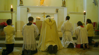 Destacamos o arranjo beneditino sobre o altar.