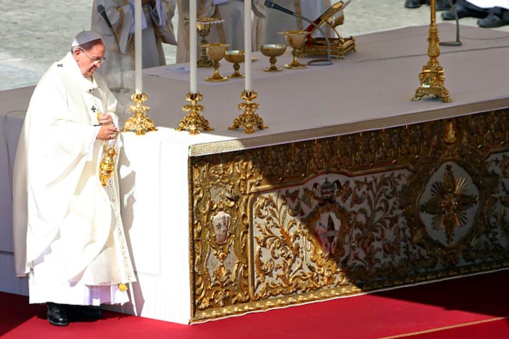 | Papa dirige-se ao altar para a Liturgia Eucarística |