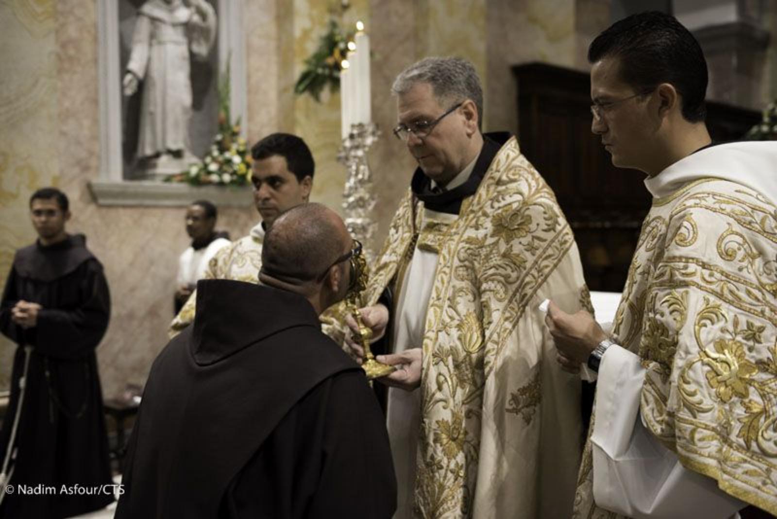 Na tarde do dia 03, o Custódio da Terra Santa, Padre Francesco Patton, presidiu a oração das I Vésperas na igreja do Santíssimo Salvador, sede da Custódia, com a renovação dos votos temporários de alguns religiosos: